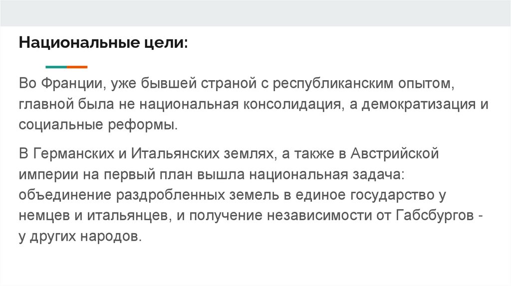 Национальные цели:Во Франции, уже бывшей страной с республиканским опытом,
