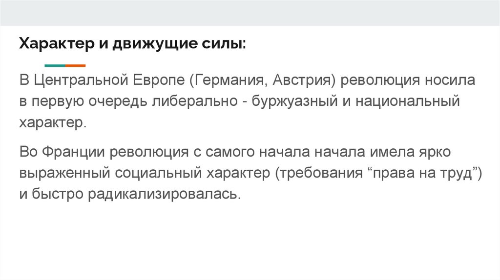 Характер и движущие силы:В Центральной Европе (Германия, Австрия) революция носила