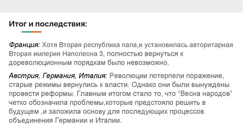 Итог и последствия:Франция: Хотя Вторая республика пала,и установилась авторитарная
