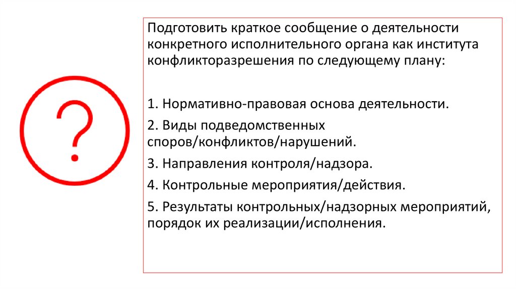 Подготовить краткое сообщение о деятельностиконкретного исполнительного органа как института
