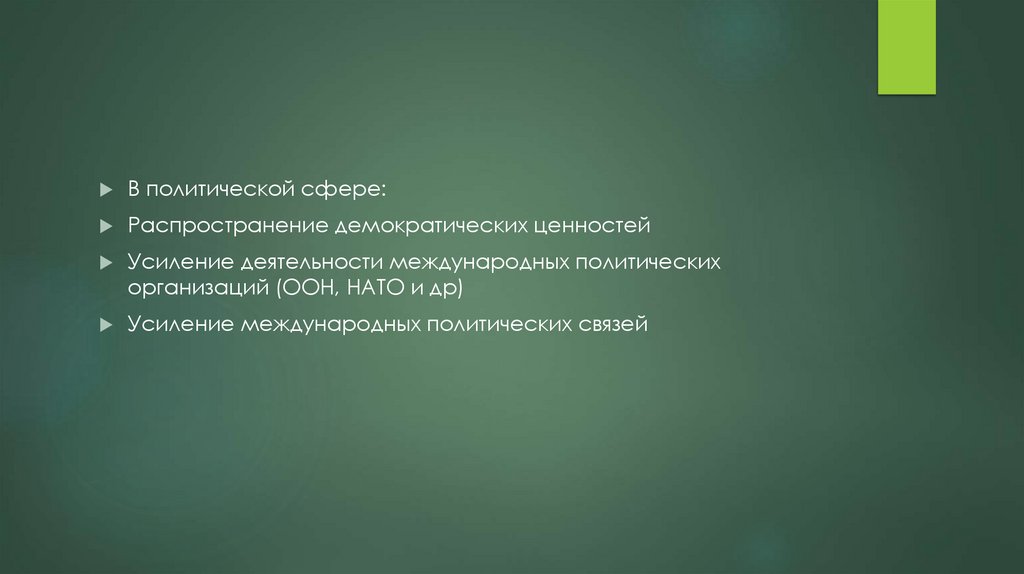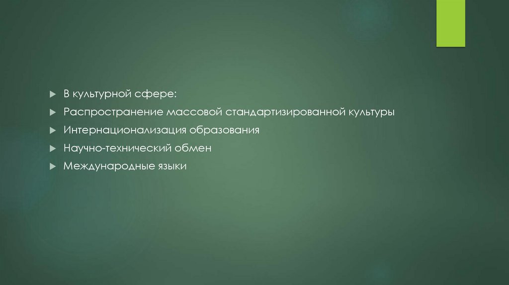 В культурной сфере:Распространение массовой стандартизированной культуры