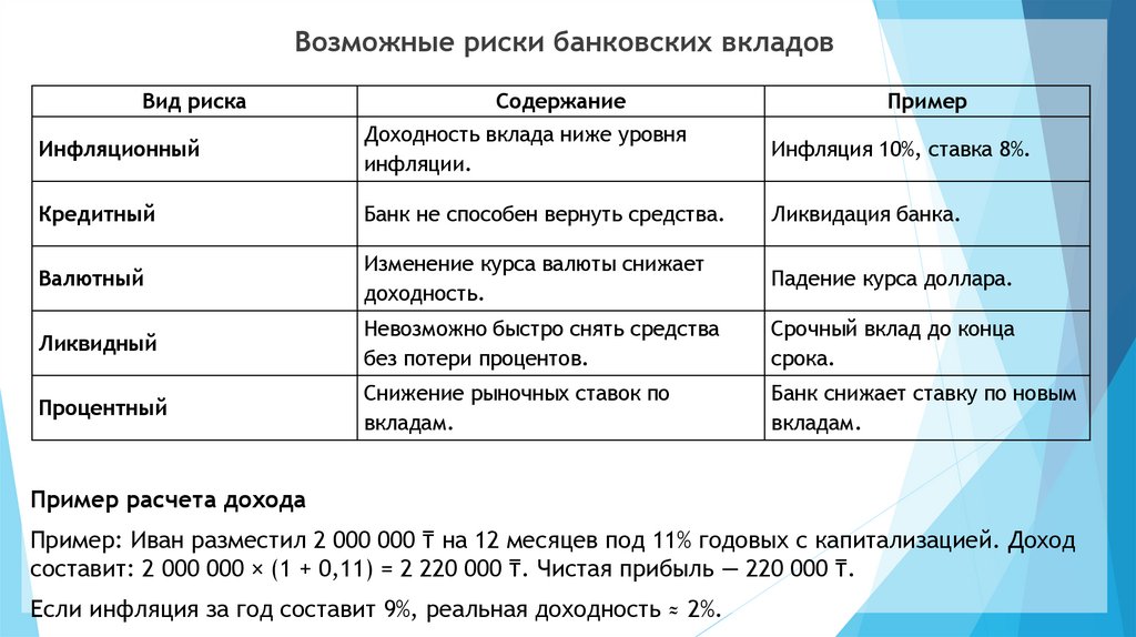 6. Условия открытия банковского вклада, возможные риски и управление ими