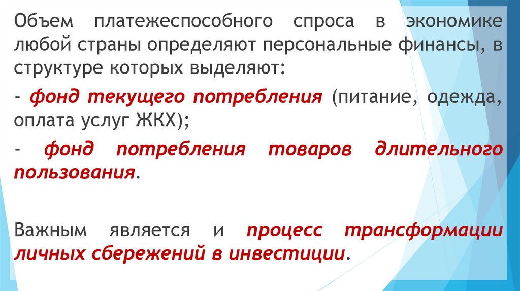 Объем платежеспособного спроса в экономикелюбой страны определяют персональные финансы, в