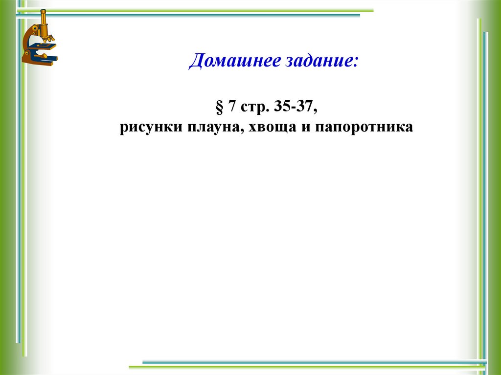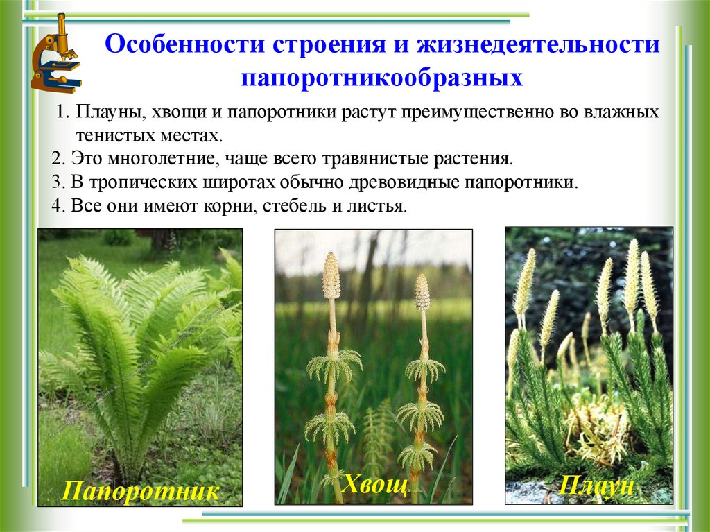 1. Плауны, хвощи и папоротники растут преимущественно во влажных