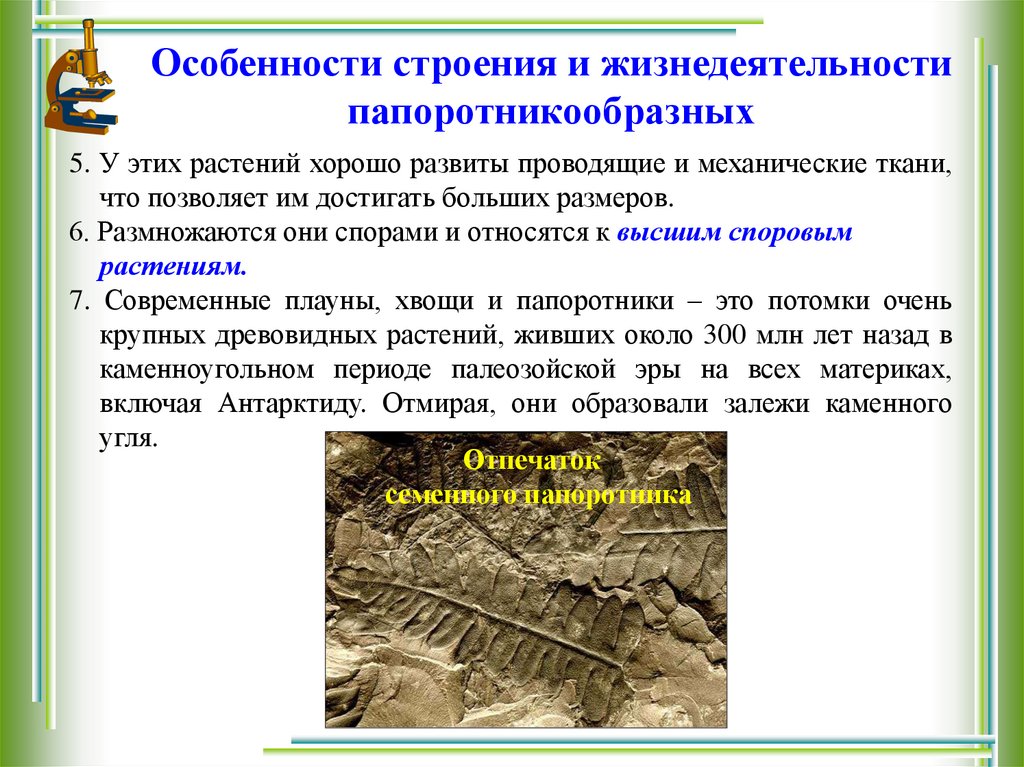 7. Современные плауны, хвощи и папоротники – это потомки очень