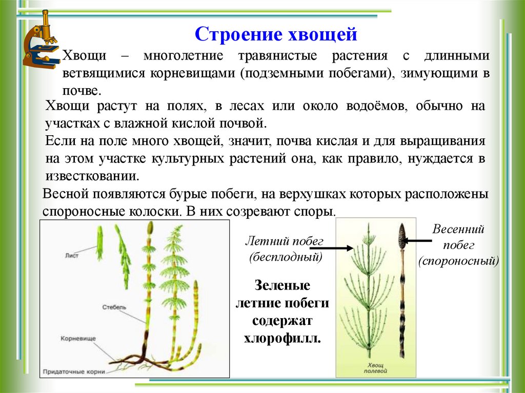 Строение хвощейХвощи – многолетние травянистые растения с длинными