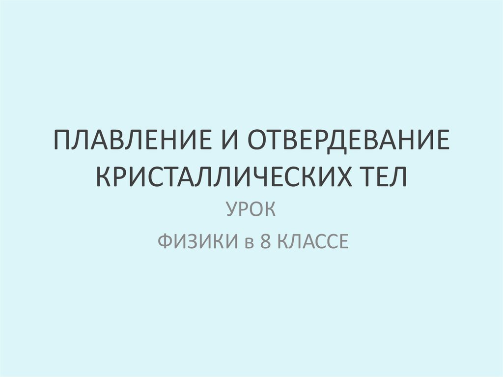 1. ПЛАВЛЕНИЕ И ОТВЕРДЕВАНИЕ КРИСТАЛЛИЧЕСКИХ ТЕЛ