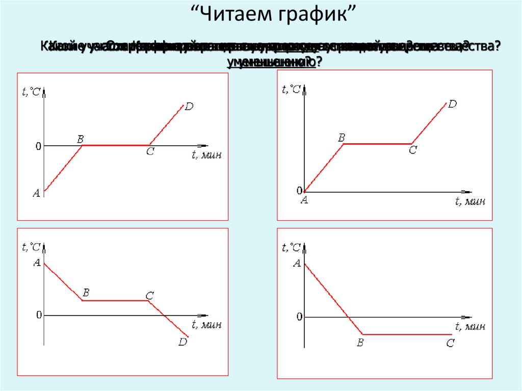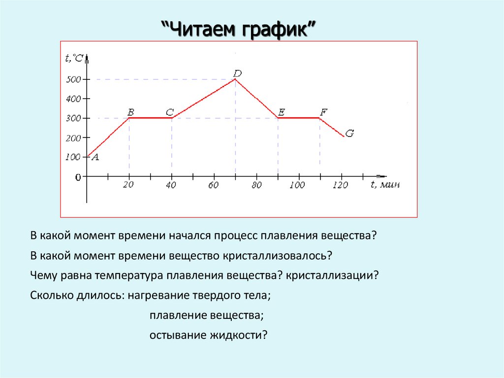 “Читаем график”В какой момент времени начался процесс плавления вещества?
