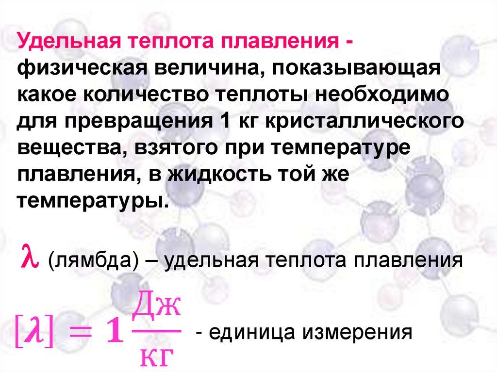 Удельная теплота плавления физическая величина, показывающаякакое количество теплоты необходимо