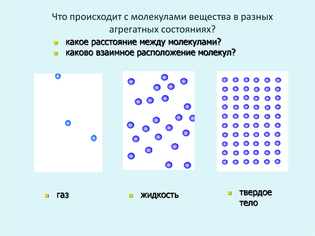 Что происходит с молекулами вещества в разныхагрегатных состояниях?