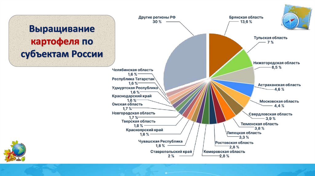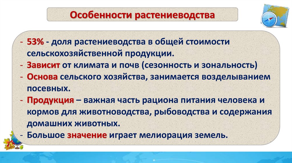 Особенности растениеводства- 53% - доля растениеводства в общей стоимости