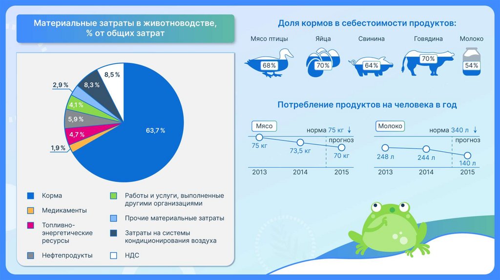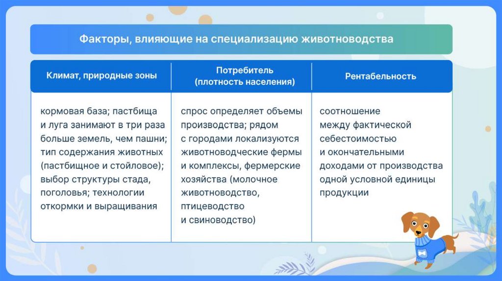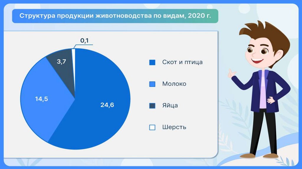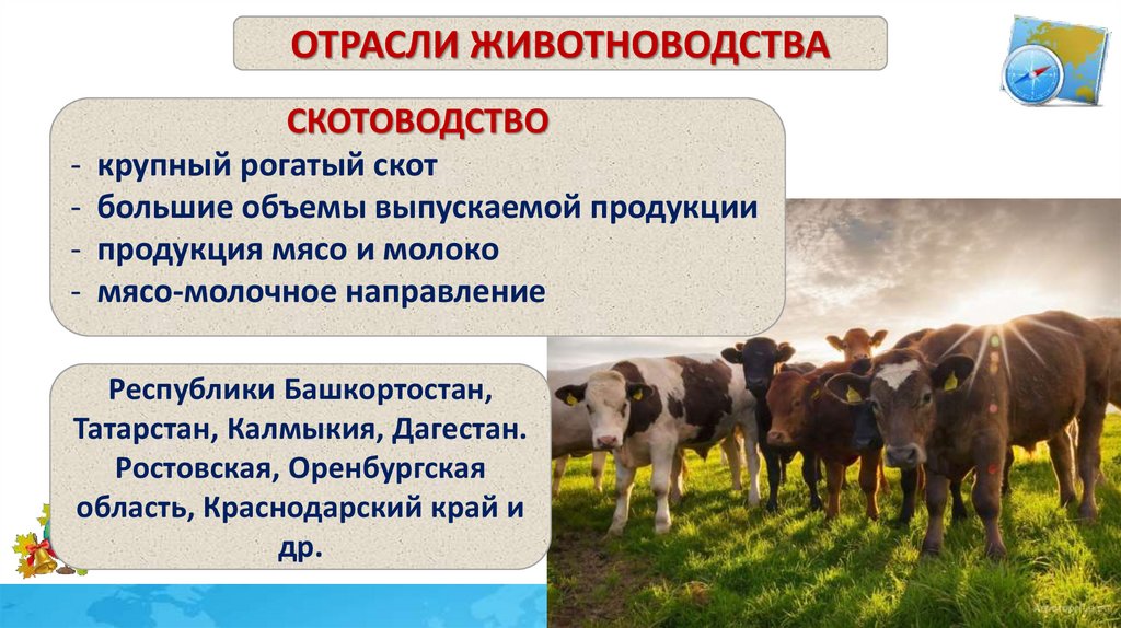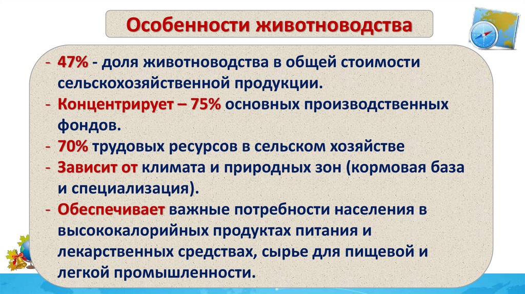 Особенности животноводства- 47% - доля животноводства в общей стоимости