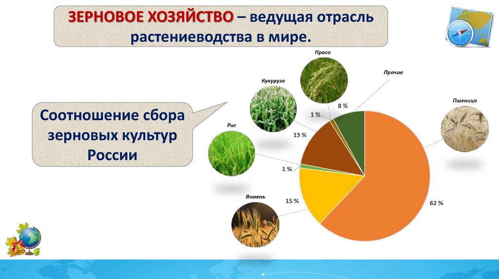 ЗЕРНОВОЕ ХОЗЯЙСТВО – ведущая отрасльрастениеводства в мире.