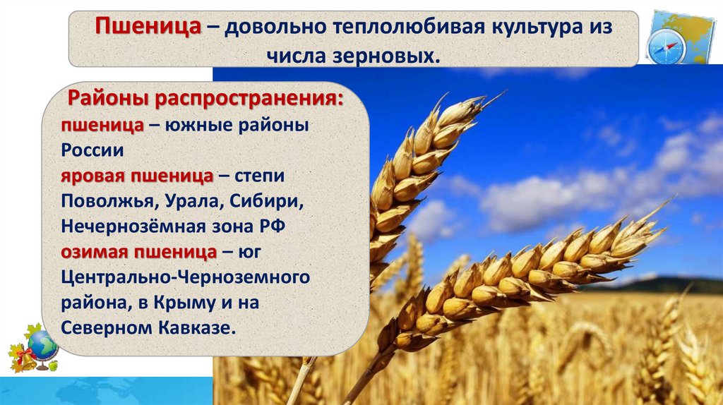 Пшеница – довольно теплолюбивая культура изчисла зерновых.