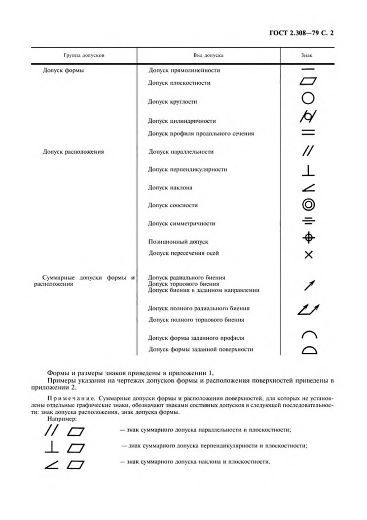 Допуски формы и расположения поверхностей указывают на чертежах условными обо