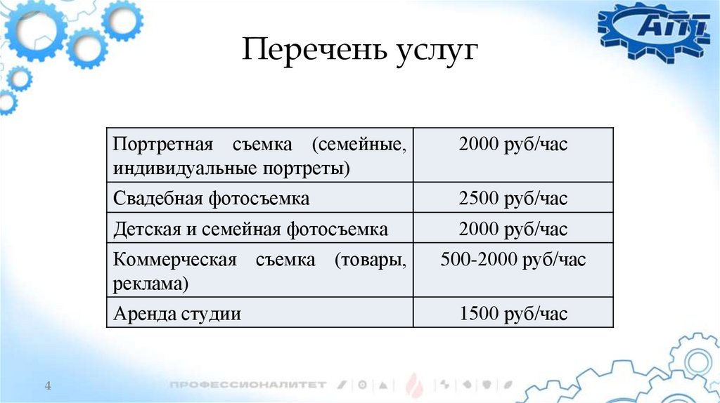 предоставляющую широкий спектр услуг фотосъемки для частных лиц