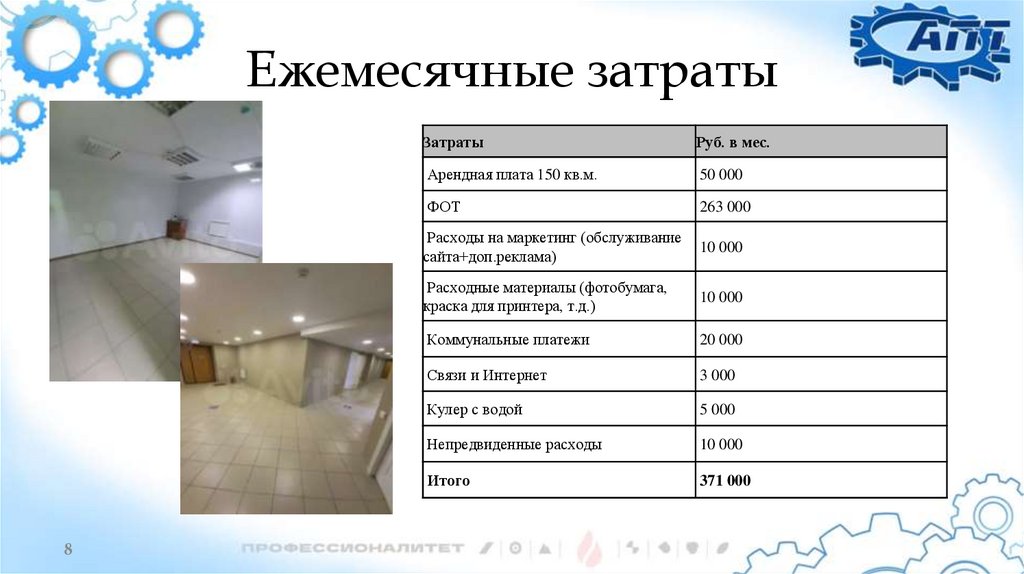 Ежемесячные затраты8