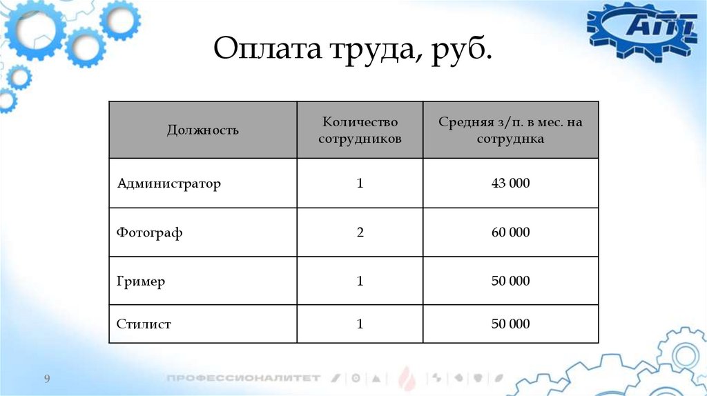 Оплата труда, руб.Количество
