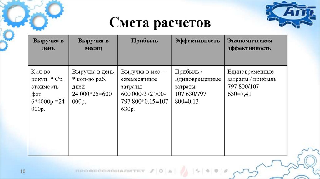 Смета расчетов10