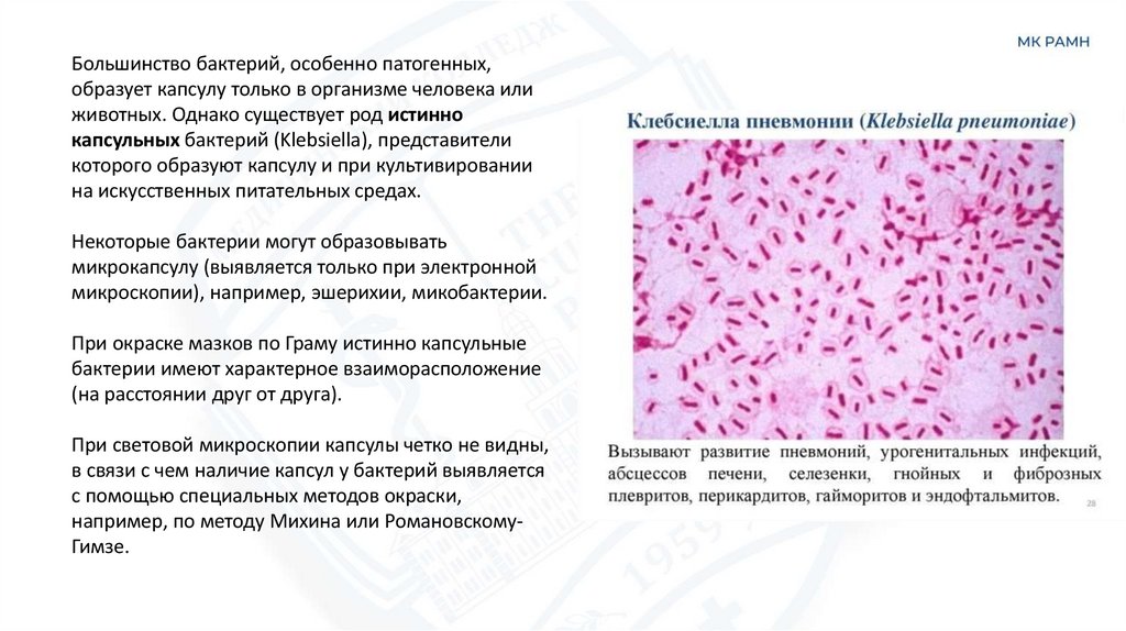 Большинство бактерий, особенно патогенных,образует капсулу только в организме человека или