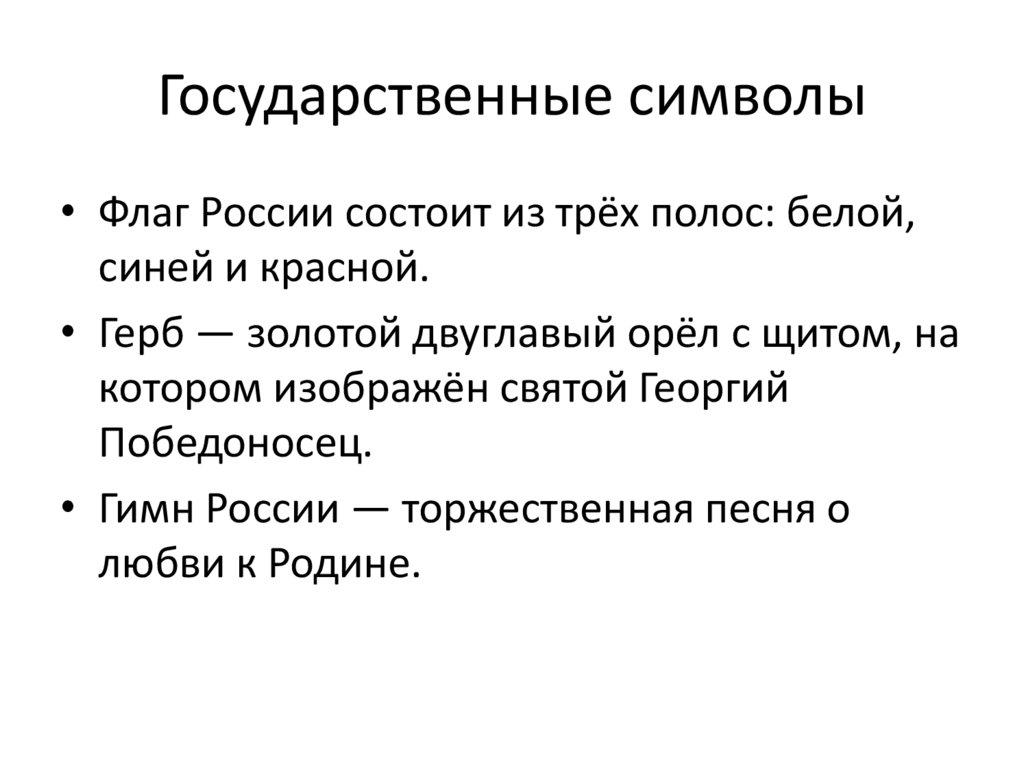 Государственные символы• Флаг России состоит из трёх полос: белой,