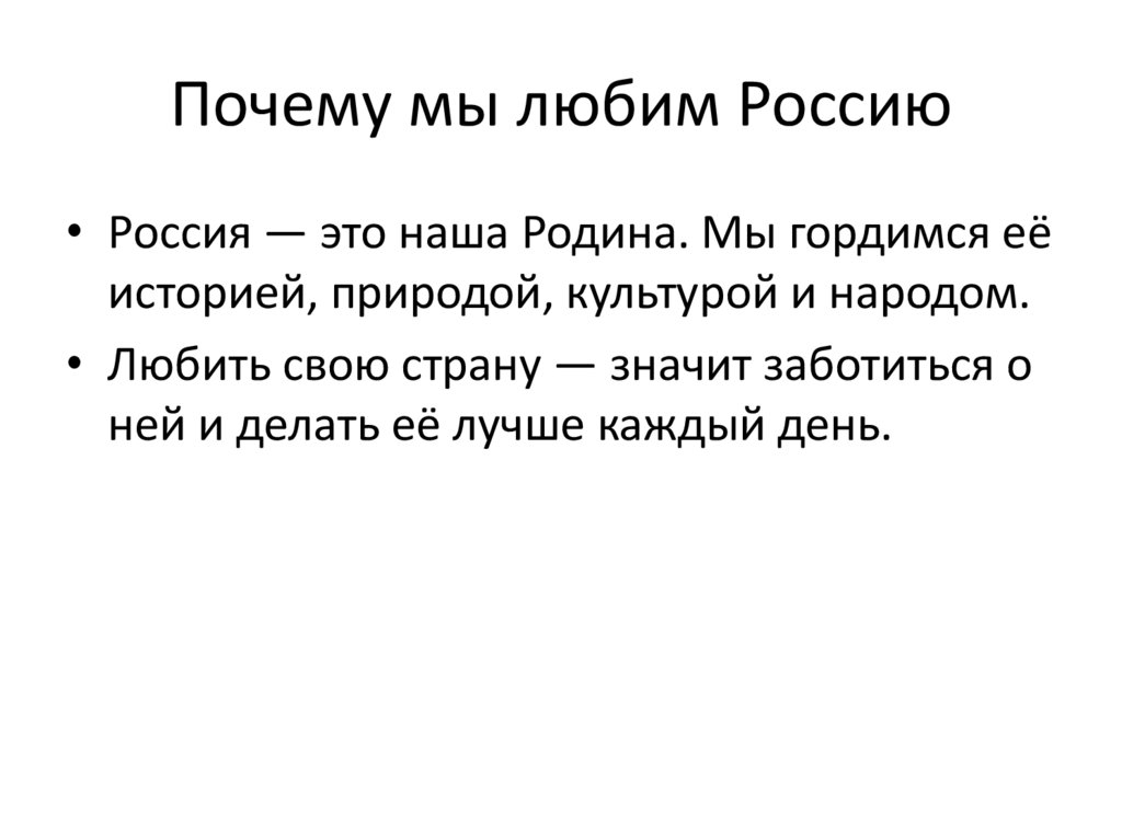 Почему мы любим Россию• Россия — это наша Родина. Мы гордимся её