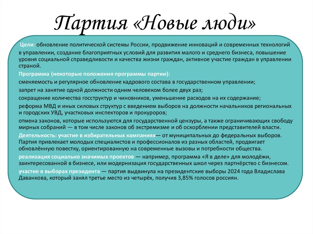 участие в выборах президента — партия выдвинула на президентские выборы 2024 года Владислава
