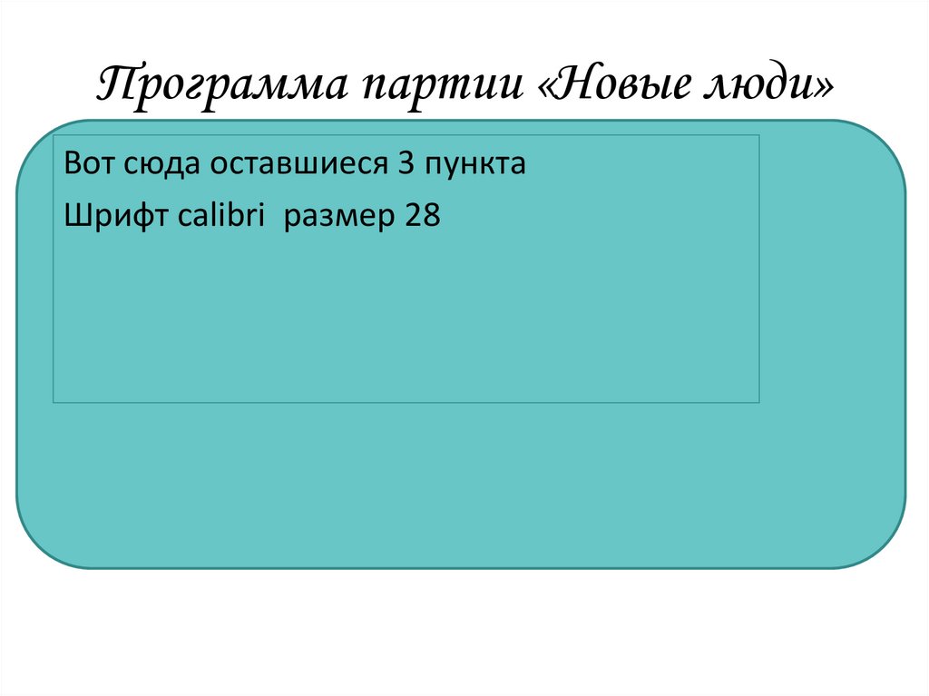 Вот сюда оставшиеся 3 пунктаШрифт calibri размер 28