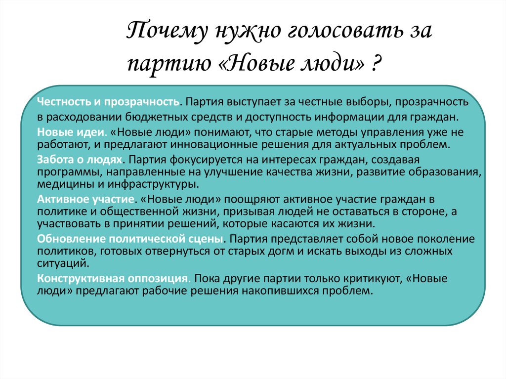 5. Почему нужно голосовать за партию «Новые люди» ?