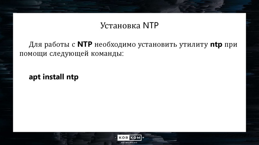 Для работы с NTP необходимо установить утилиту ntp припомощи следующей команды:
