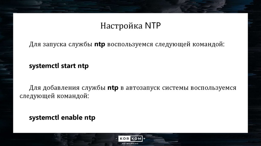 Для запуска службы ntp воспользуемся следующей командой:systemctl start ntp