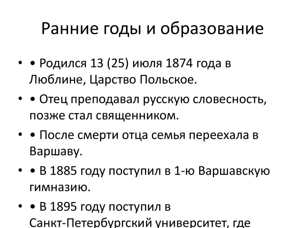 Ранние годы и образование• • Родился 13 (25) июля 1874 года в