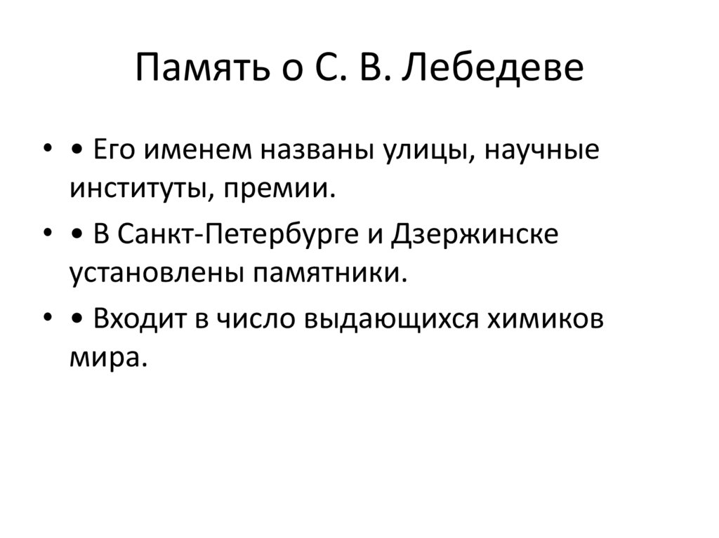 Память о С. В. Лебедеве• • Его именем названы улицы, научные