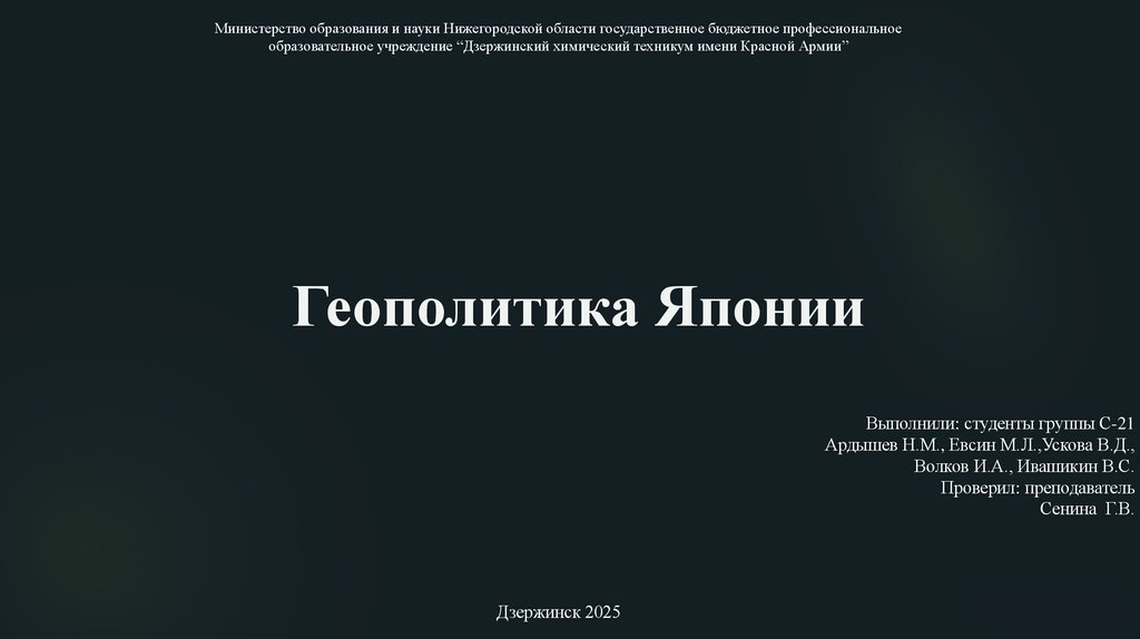 Министерство образования и науки Нижегородской области государственное бюджетное профессиональноеобразовательное учреждение “Дзержинский химический техникум имени Красной Армии”
