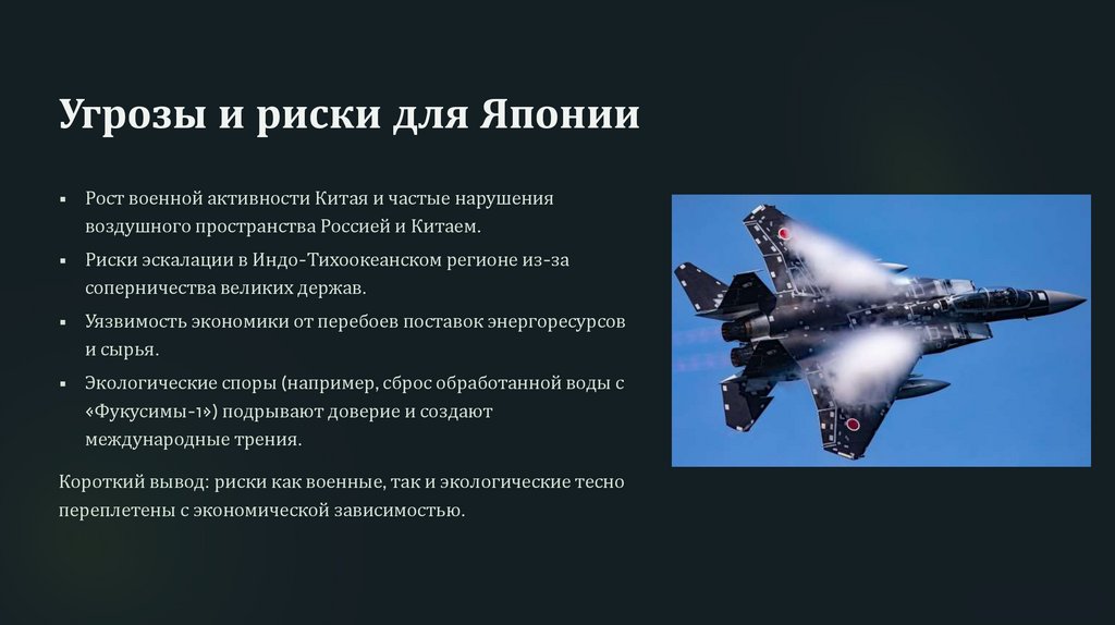 Угрозы и риски для Японии• Рост военной активности Китая и частые нарушения