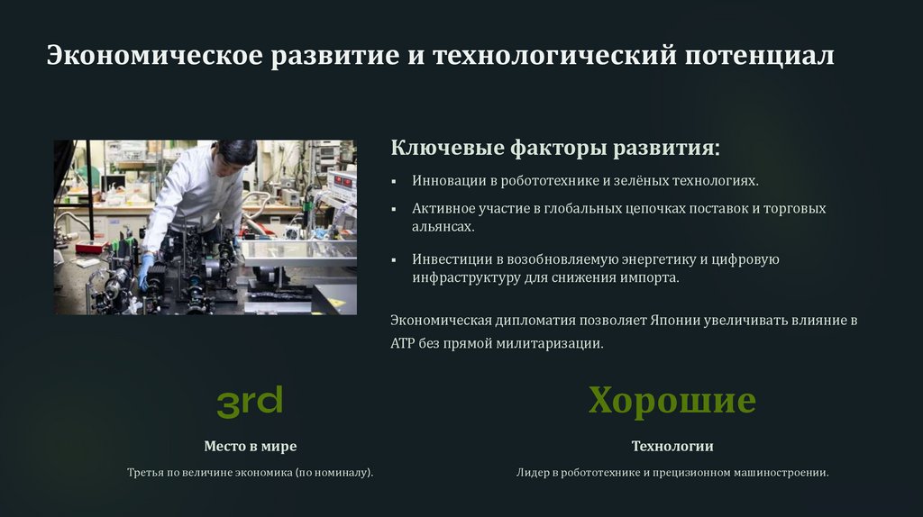 Экономическое развитие и технологический потенциалКлючевые факторы развития: