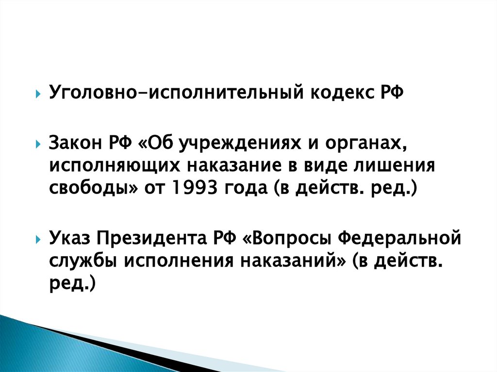 Уголовно-исполнительный кодекс РФЗакон РФ «Об учреждениях и органах,