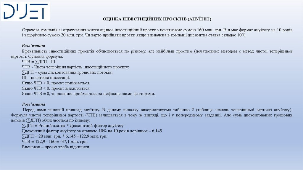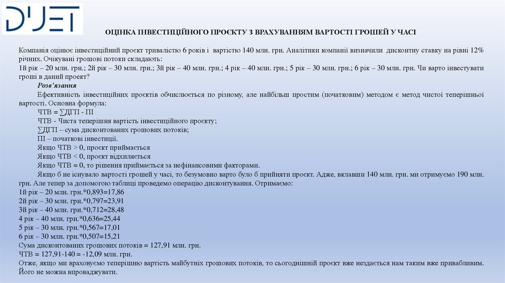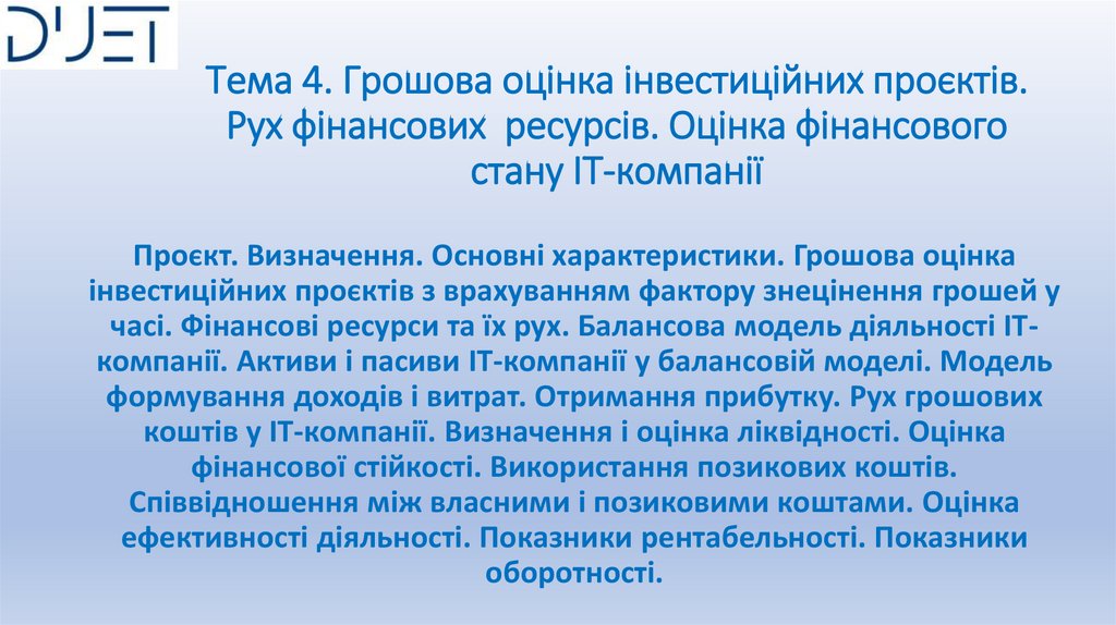 1. Тема 4. Грошова оцінка інвестиційних проєктів. Рух фінансових ресурсів. Оцінка фінансового стану ІТ-компанії
