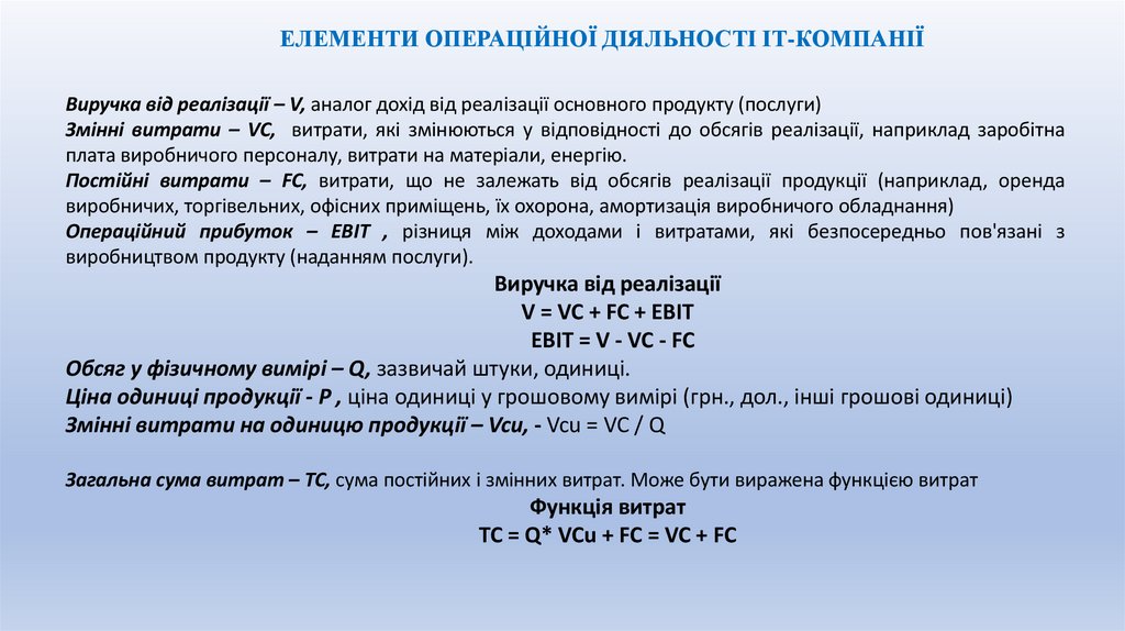 • Якою буде сума виручки від реалізації, яка забезпечить чистий