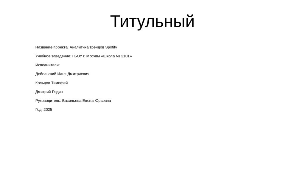 ТитульныйНазвание проекта: Аналитика трендов Spotify