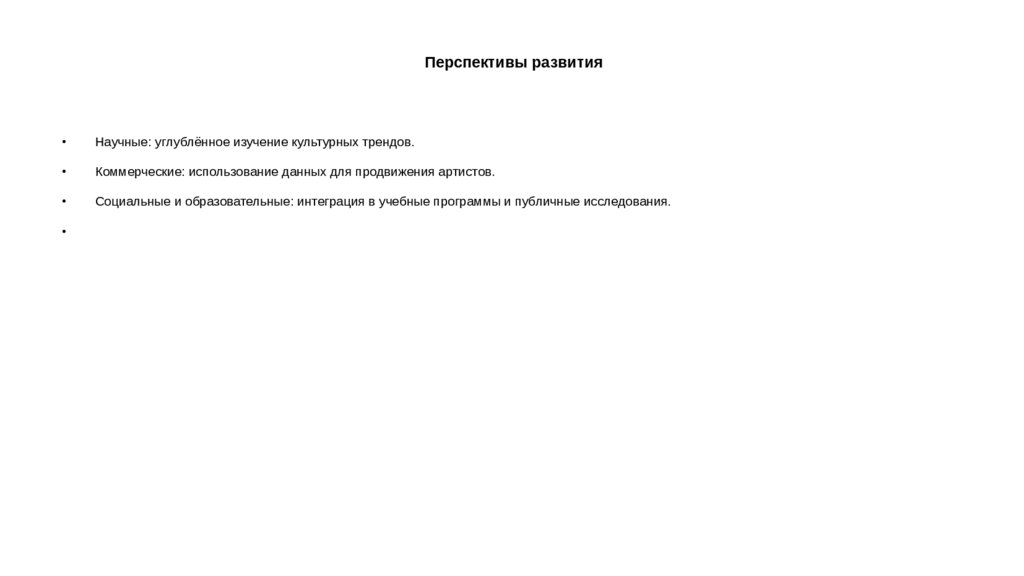 Перспективы развитияНаучные: углублённое изучение культурных трендов.