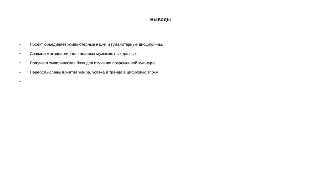 ВыводыПроект объединяет компьютерные науки и гуманитарные дисциплины.
