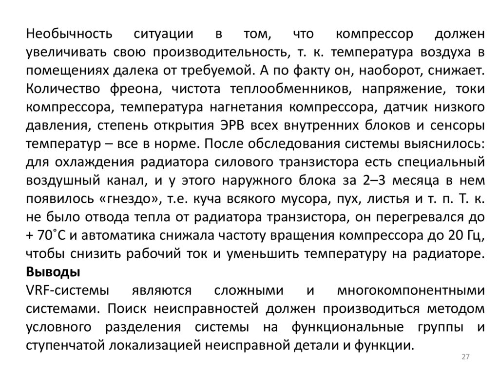 Сервис и поиск неисправностей VRF-системУровень знаний и глубина понимания процессов в холодильном