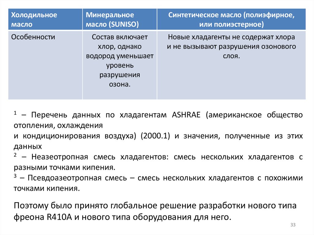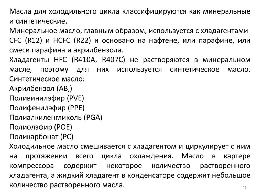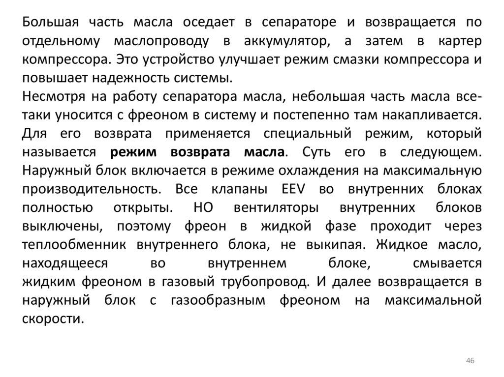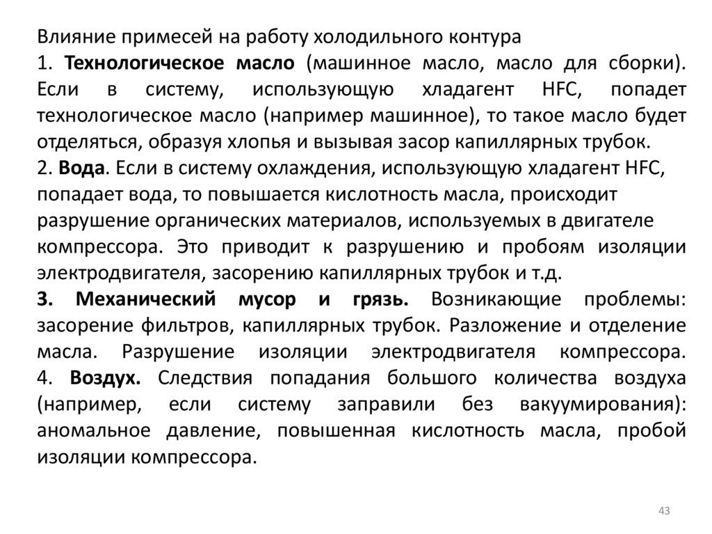 Несмотря на работу сепаратора масла, небольшая часть масла всетаки уносится с фреоном в систему и постепенно там накапливается.