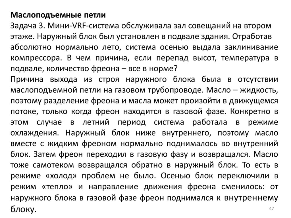 Маслоподъемные петлиЗадача 3. Мини-VRF-cистема обслуживала зал совещаний на втором