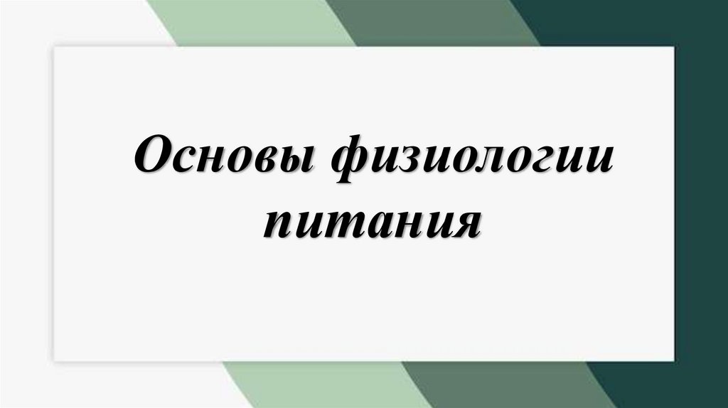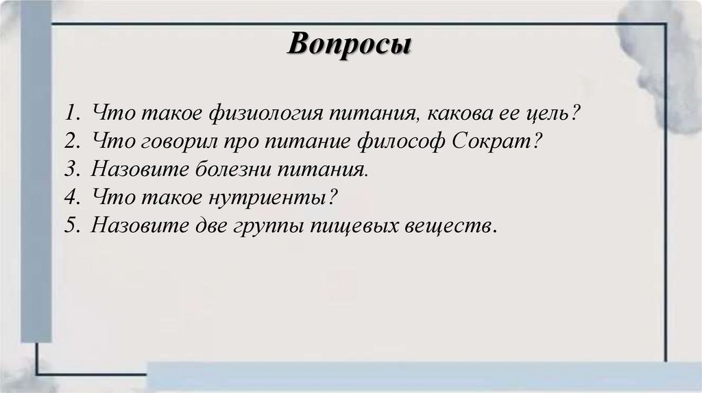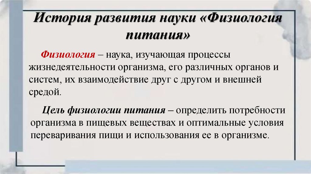Вопросы1. Что такое физиология питания, какова ее цель?