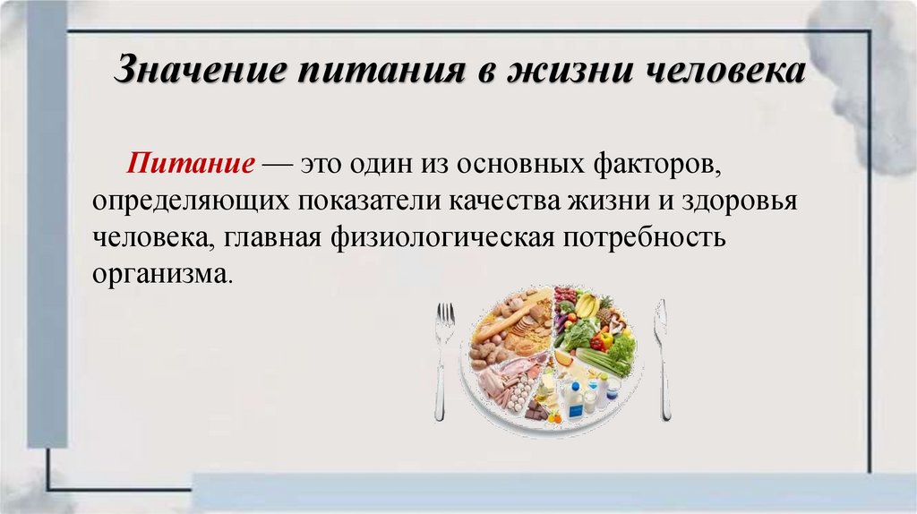 Значение питания в жизни человекаПитание — это один из основных факторов,