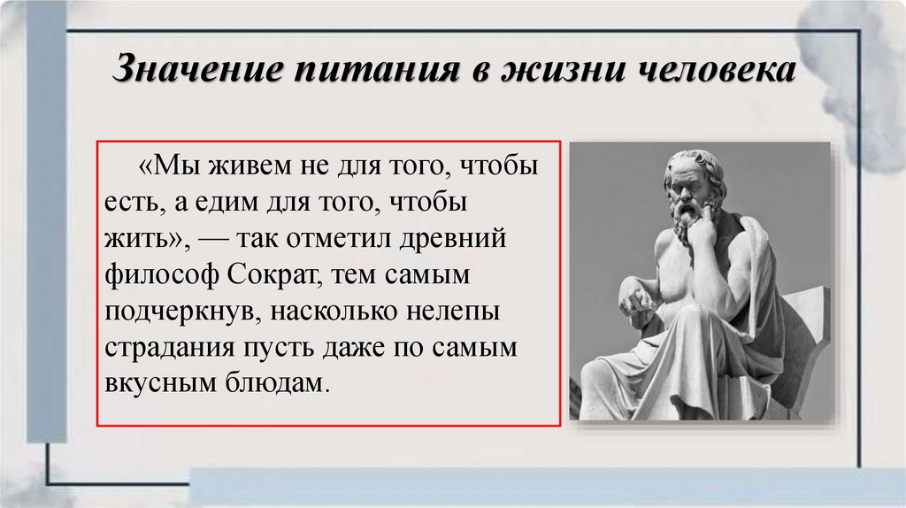 Значение питания в жизни человека«Мы живем не для того, чтобы