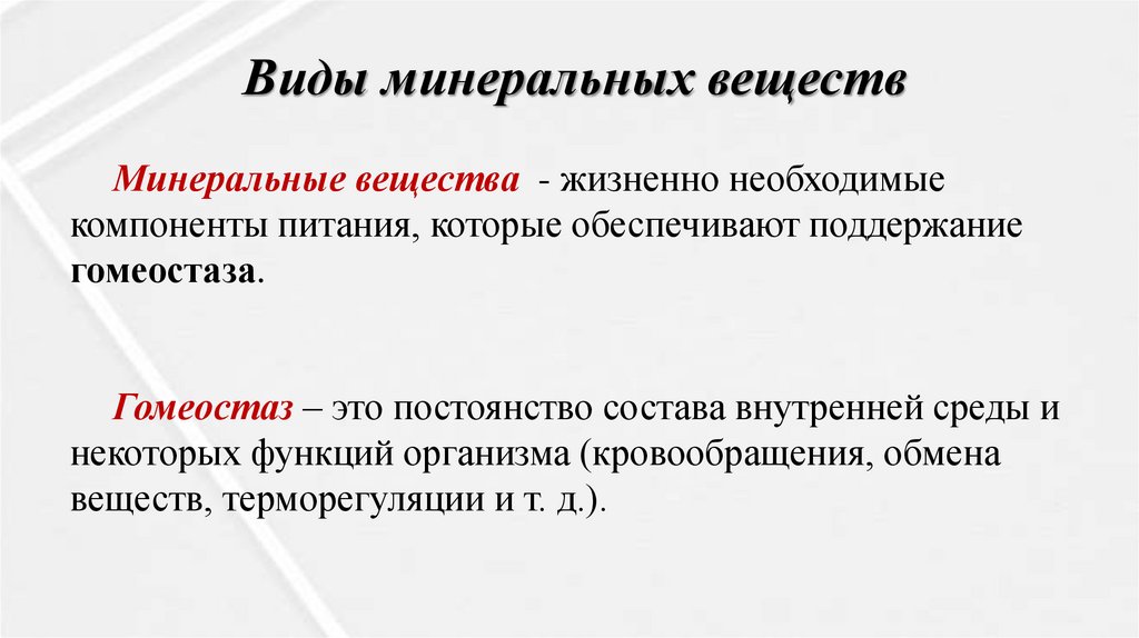 Виды минеральных веществМинеральные вещества - жизненно необходимые