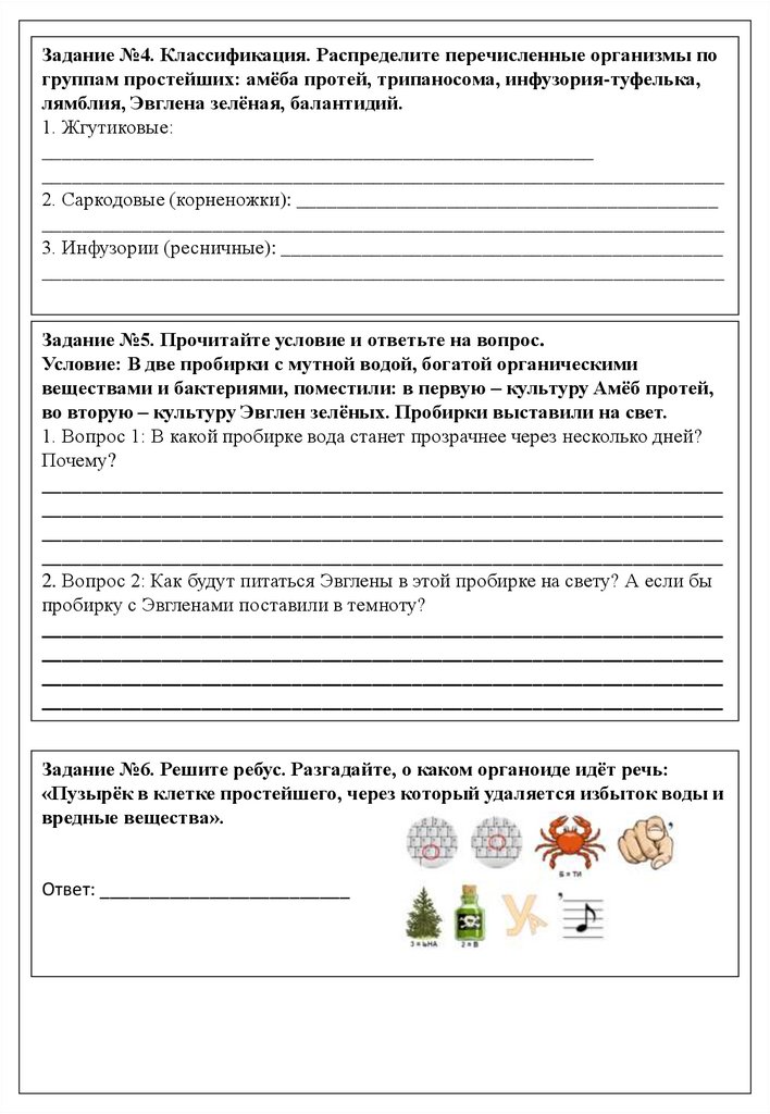 Задание №4. Классификация. Распределите перечисленные организмы погруппам простейших: амёба протей, трипаносома, инфузория-туфелька,